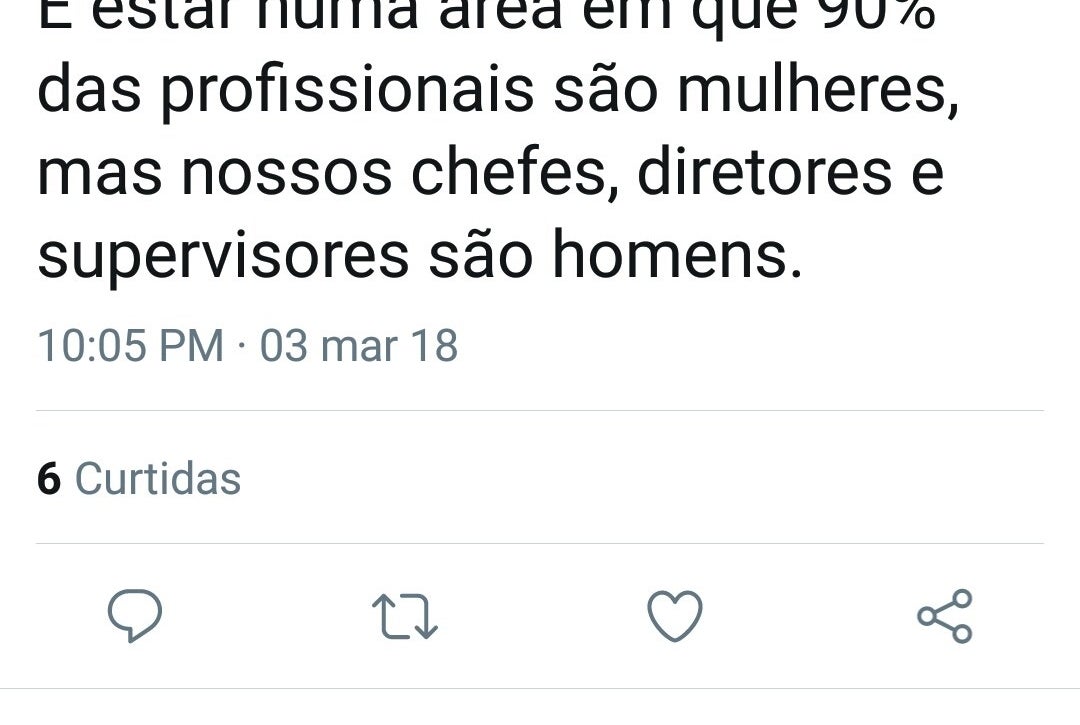 Imagem: Reprodução/TwitterE também ter apenas chefes homens, mesmo que as mulheres sejam maioria na área.