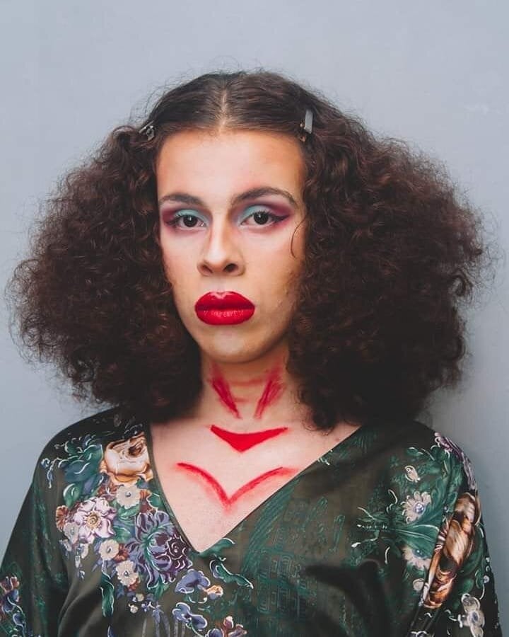 Quem sou eu: Sou uma identidade transfeminina não-binária, estudante de pedagogia e teatro, formada em multimídia e web design, artista plástica-visual, aderecista e indumentária experimental, drag e embaixadora Multicor de Treinamento e Desenvolvimento na área de Gente, Cultura e Carreira do Grupo Cataratas. Eu gosto de doces e de pensar, produzir e refletir sobre arte. Arte e discussões de gênero são pautas intrínsecas a mim. O meu processo de experimentação de gênero começou em meados de 2016. Mas só comecei a de fato me questionar e me entender enquanto corporalidade transvestigenere no final do mesmo ano. E esses questionamentos foram muito próximos de quando pensava sobre a minha sexualidade.